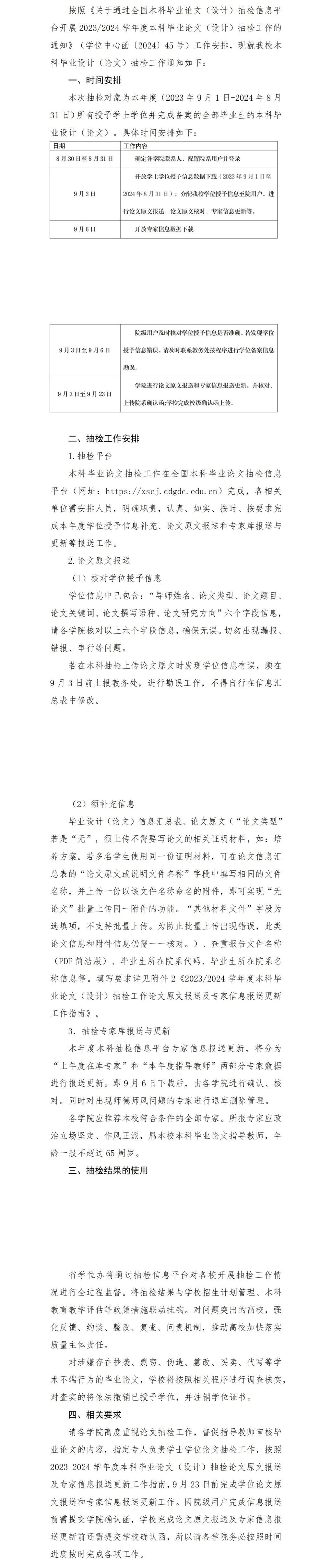 关于做好 2023-2024 学年度本科毕业设计(论文)抽检工作的通知