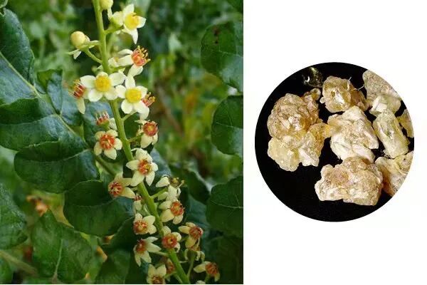 乳香,始载于《名医别录》,是橄榄科矮小灌木或乔木乳香树、鲍达乳香树或野乳香树等植物皮部渗出的油胶树脂。本品味辛、苦,性温,归心、肝、脾经。